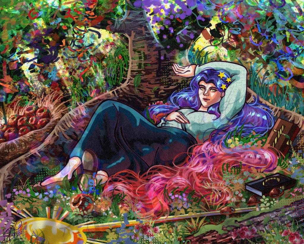 Reposo en medio del bosque de un personaje ficticio de mi autoría