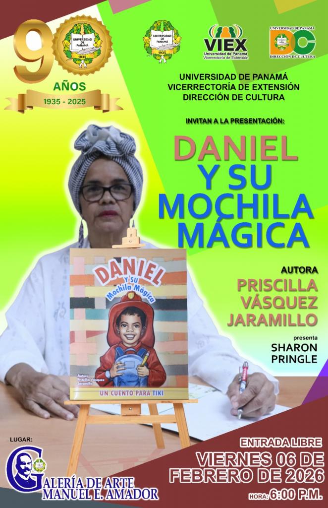 📚✨ La Universidad de Panamá, a través de la Vicerrectoría de Extensión y la Dirección de Cultura, invita a la comunidad al lanzamiento de la obra infantil "Daniel y su mochila mágica" 🎒🌟.