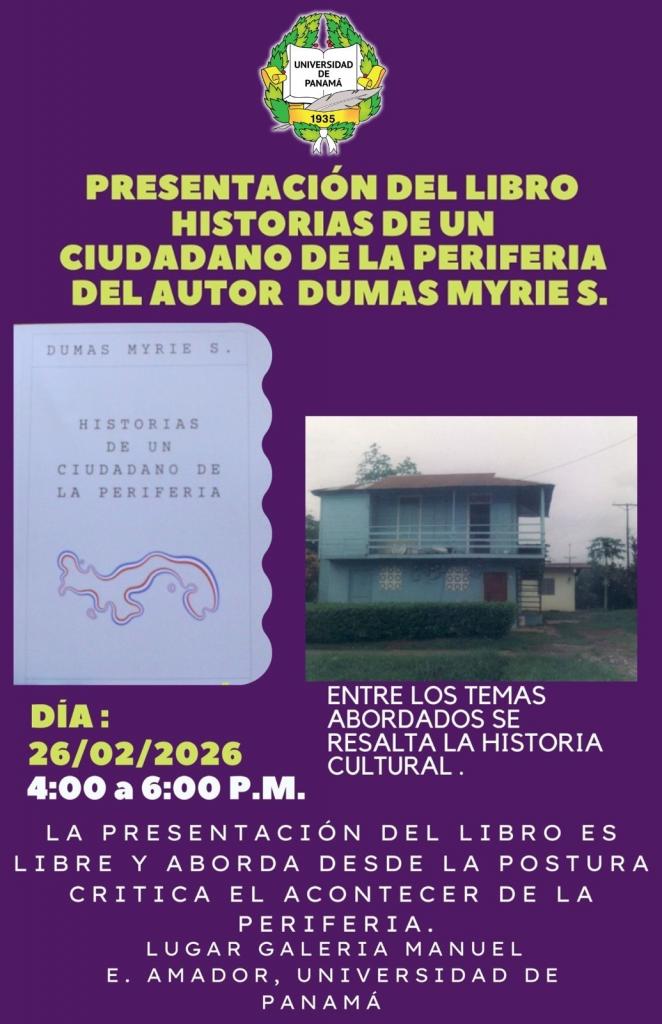 La actividad se realizará el miércoles 26 d... Ver másLa Galería Manuel E. Amador, invita al público en general a la presentación del libro "Historias de un ciudadano de la periferia", del autor Dumas Myrie S.