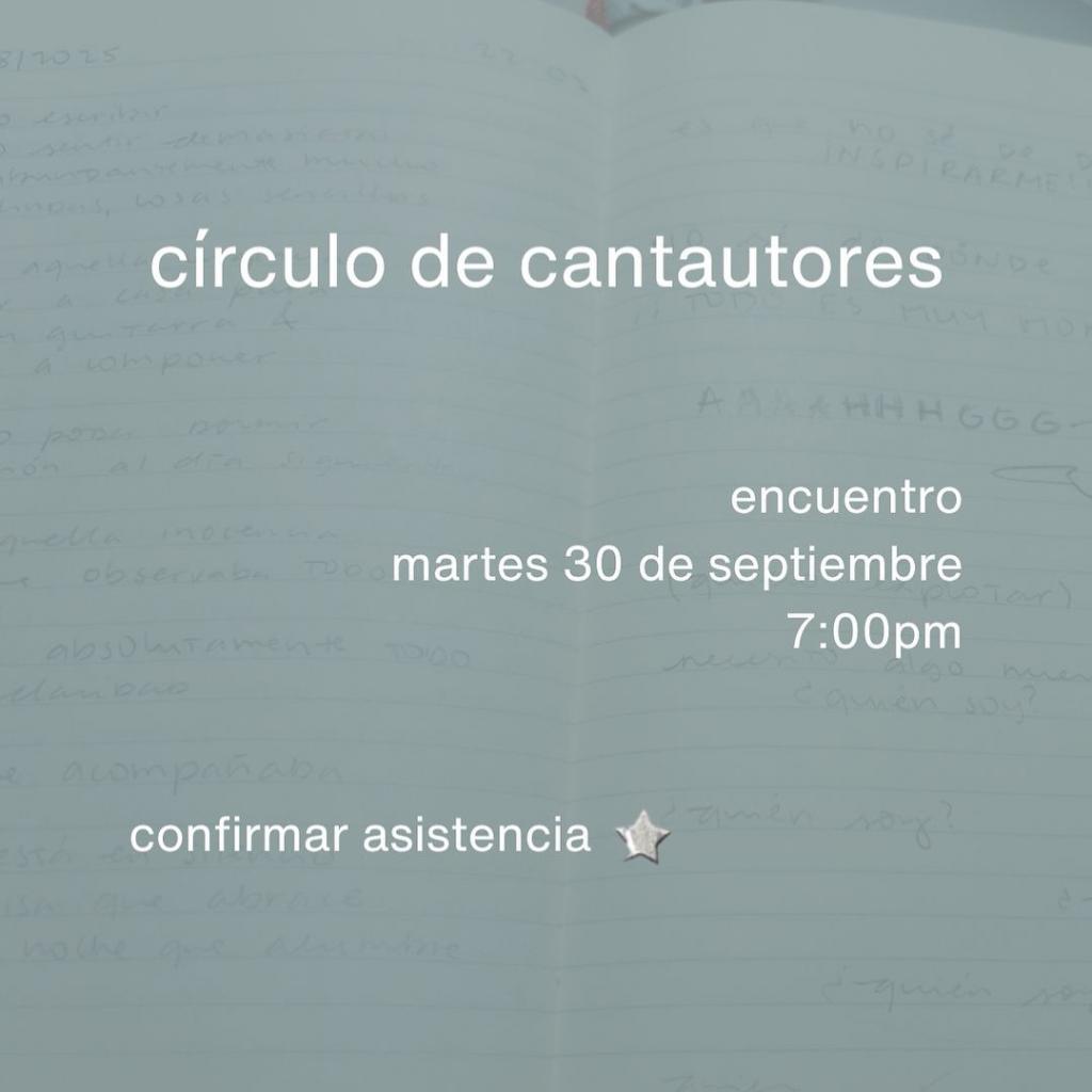 Si eres cantautor/a y quieres ser parte de un espacio para compartir junto a otros cantautores escríbenos al DM. Este espacio es íntimo y cuidado para compartir nuestras canciones.